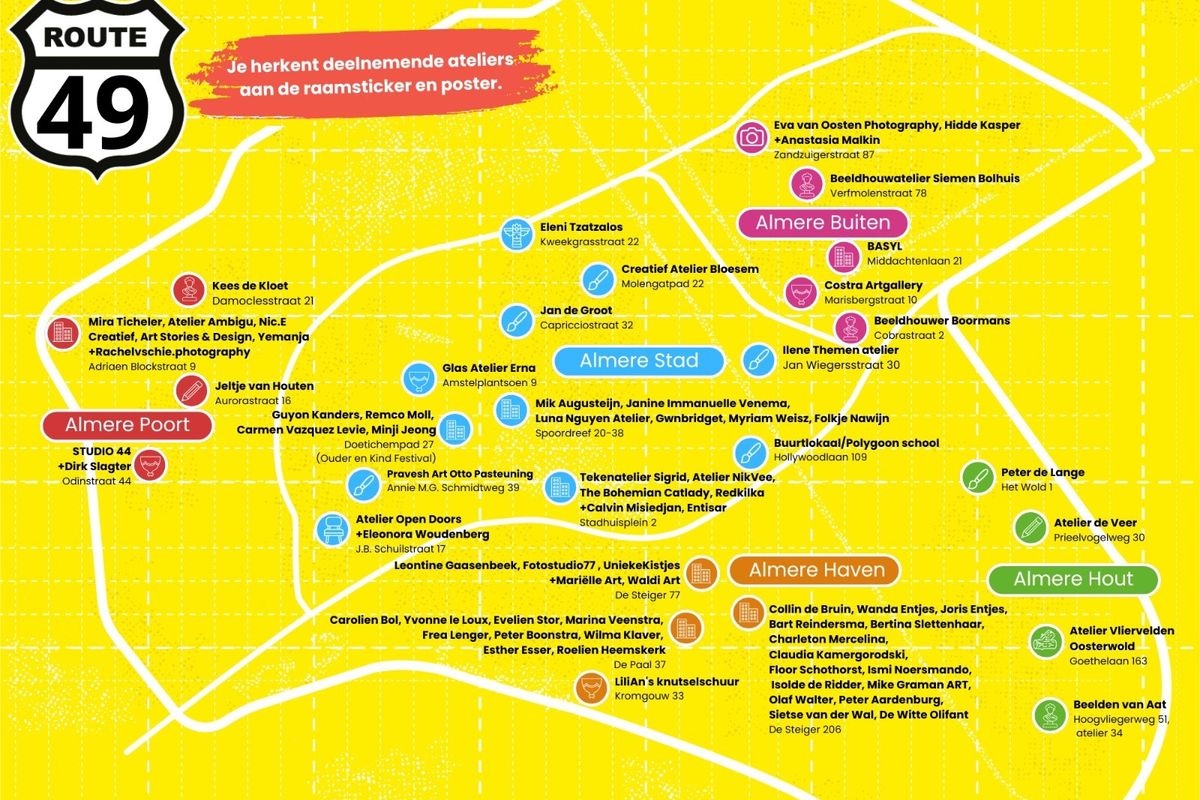 Op zaterdag 29 en zondag 30 november openen meer dan 70 kunstenaars van Route 49 hun ateliers voor publiek. Bezoekers zijn op beide dagen van 12.00 tot 17.00 uur welkom om de ateliers te bekijken, de kunstenaars te spreken en kunst te beleven. Buurtbewoners, Almeerders uit andere stadsdelen en bezo...