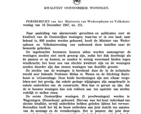 Het ministerie van wederopbouw heeft daarom op 15 dec. 1947een persbericht doen uitgaan: