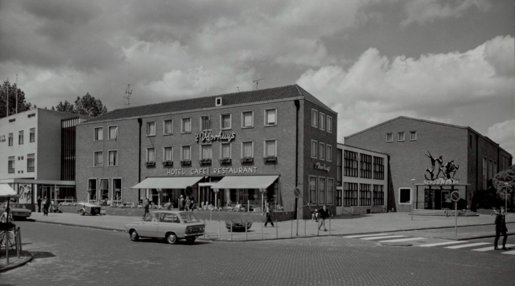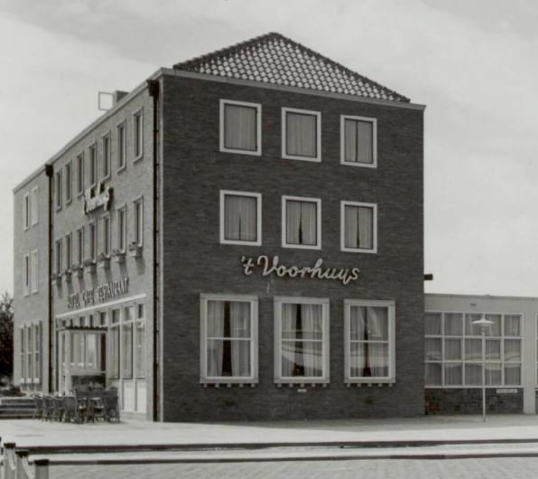 Het anker stond er niet vanaf de bouw van ’t Voorhuys (1953) maar komt pas vanaf 1959-1960 in beeld.