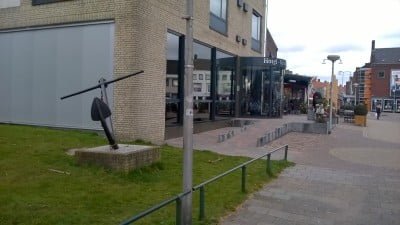 In het centrum van Emmeloord nabij het gebouw ‘De Brug’ ligt een anker.