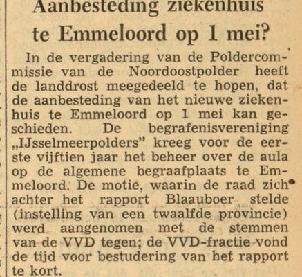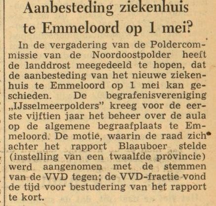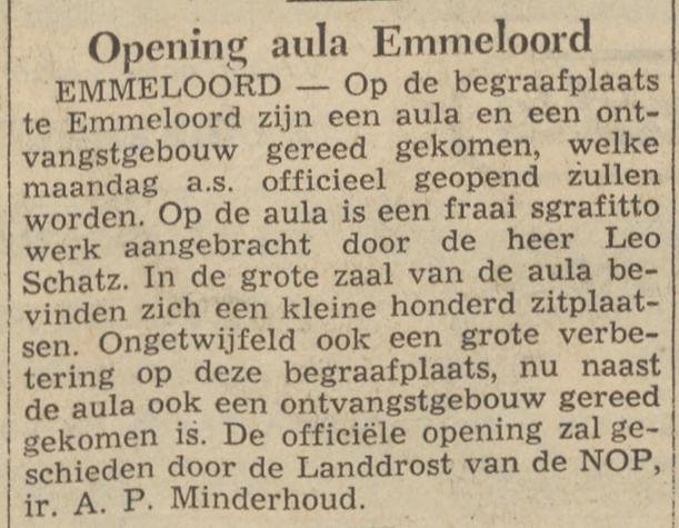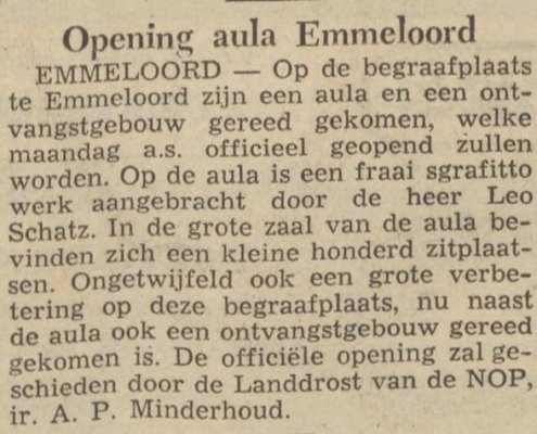Op 29 maart 1960 verrichtte landdrost ir. A.P. Minderhoud de officiële ingebruikname van het gebouw op de begraafplaats van Emmeloord.