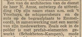 De uitbreiding van de aula is ontworpen door één van de architecten van de dienst, de heer N. Amse.