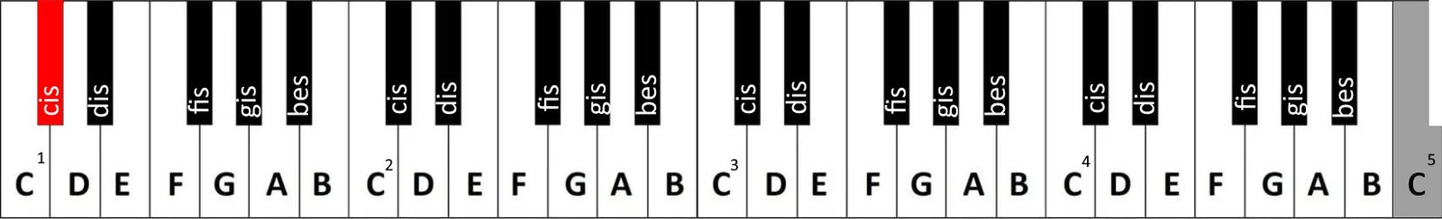 Dus alleen de Cis in het onderste octaaf. Zie onderstaande foto.