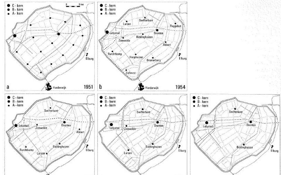 Dronten, Biddinghuizen, Swifterbant, Larsen en Zeewolde. - In 1963 werd Zeewolde geschrapt.