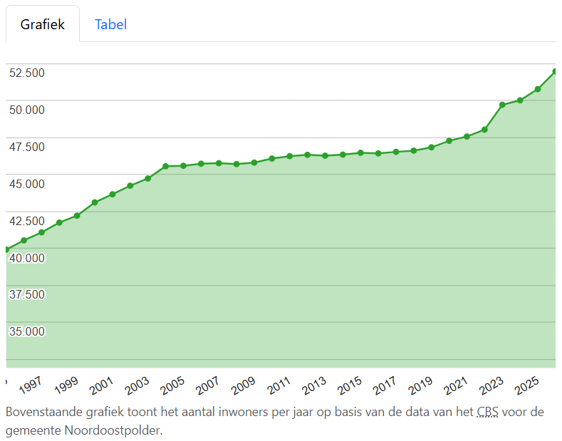 Noordoostpolder 51.997 inwoners (2026)