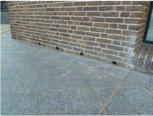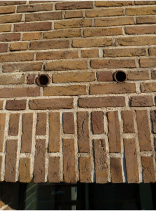 Om een goede en snelle droging van de muren te bevorderen zijn op die kanten verticaal in totaal 7200 draineerbuisjes ingemetseld. Dat is met name belangrijk om te voorkomen dat bij vorst de stenen gaan stukvriezen of barsten.